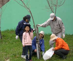 | 各自が植樹した桜に 肥料を蒔きました。 1時間チョットとの 作業で終了 成長するようにと 願いを込めて・・・・・ |